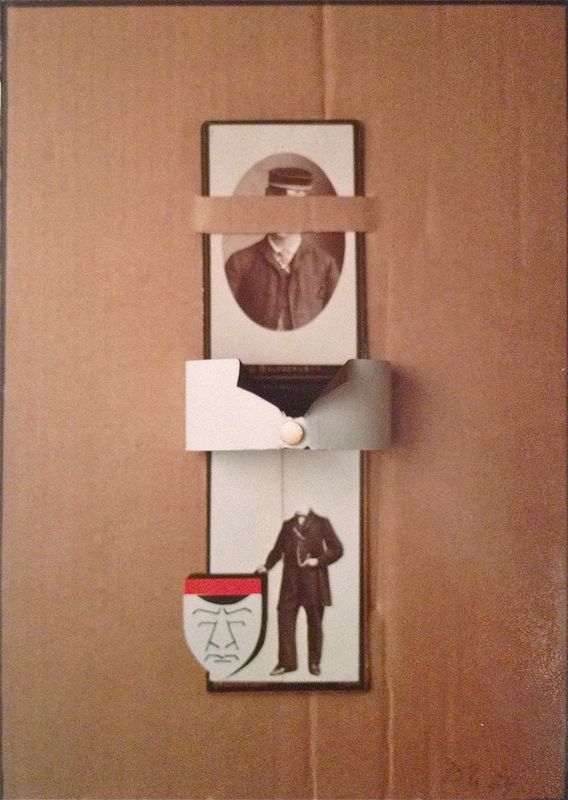 Papiers, deux photos sur carton, griffe en métal